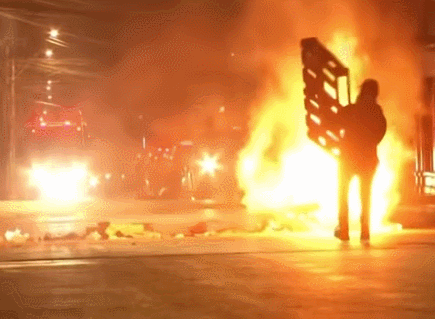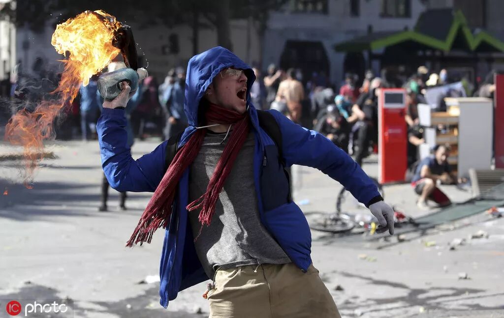使用燃烧弹纵火的智利抗议者 图源:@东方IC