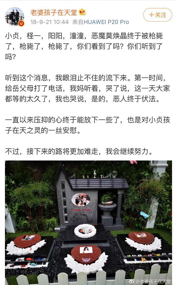 莫焕晶已经被执行了死刑,但她就是再死一百次,也换不回朱小贞和孩子们的人生重来。