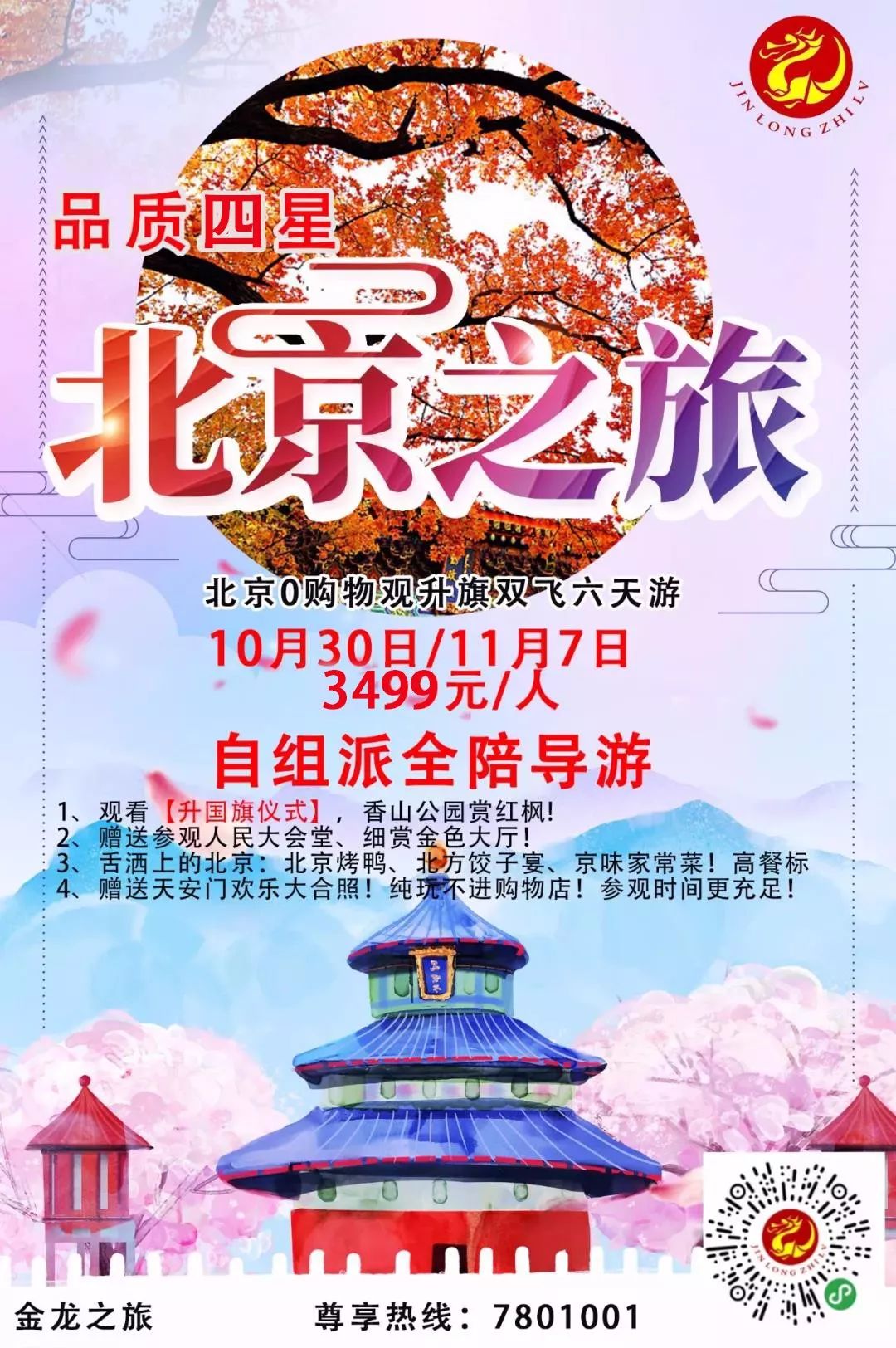 ★10月30日/11月7日 3999元|本社自组派全陪导游|纯玩不进购物店|品质五星北京0购物观升旗双飞六天游