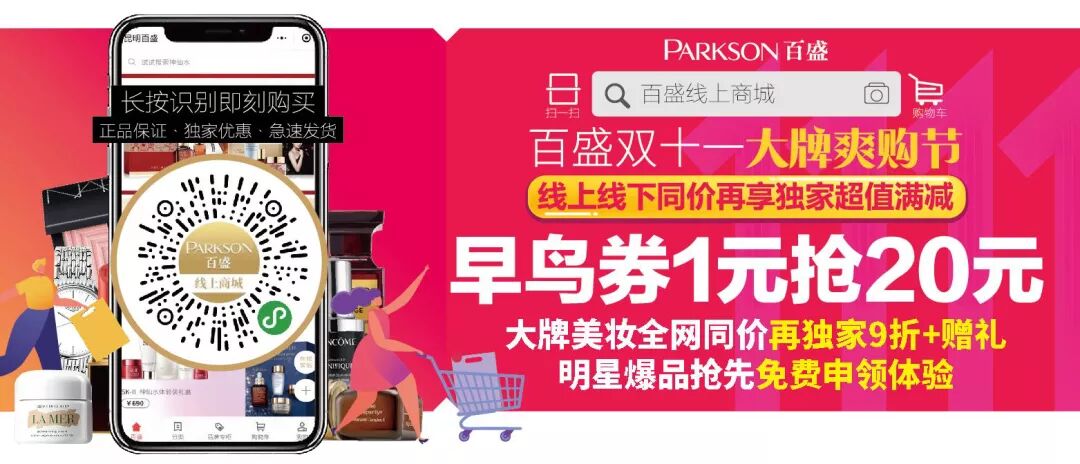 *赠品数量有限,请以实物为准,徽章、环保包和化妆包每人限领一个,先到先得,送完为止。在限量范围内,满足购买条件的均可获得相应赠品,赠品于专柜当场领取。