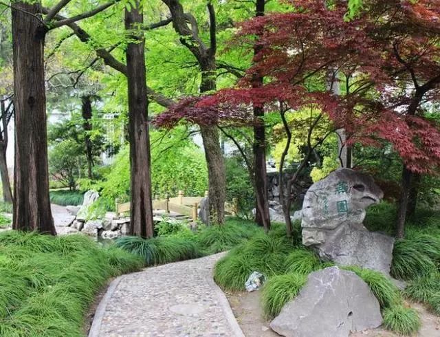 从理科图书馆门外沿着绿荫葱茏的望道路向西走约百米,一番柳暗花明之后,看到一块太湖石,上有老校长苏步青手书“燕园”二字,便来到了燕园,这座小园叠山枕水,曲径通幽,俨然校园中的小江南。