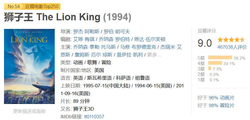 它是很多人记忆中第一部迪士尼动画长片,或者,在他们心中,辛巴的故事成为了童年一段深刻的记忆。