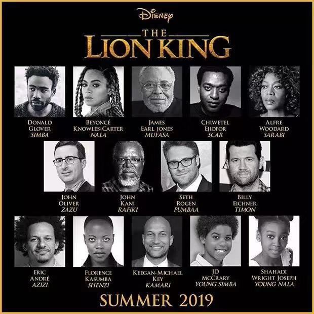 顺着看下来,“真人版”《狮子王》集结了众多大咖,连碧昂丝、塞斯·罗根等艺人都来加盟。