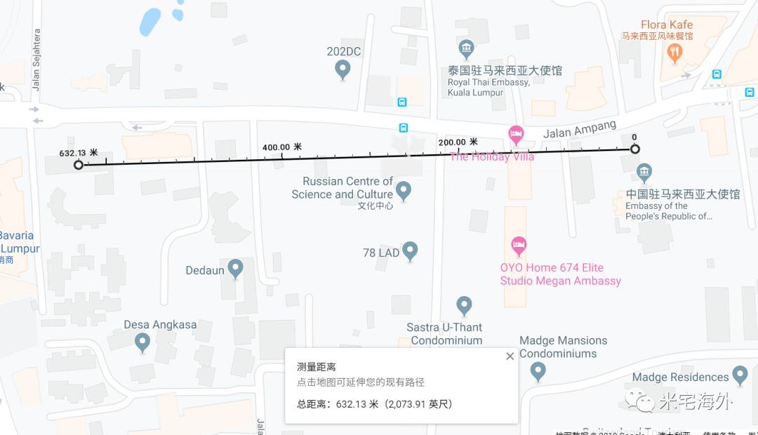 距离中国大使馆的直线距离也只有630米。
