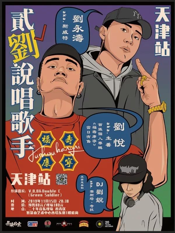 两位在平时总是开玩笑说,自己是二流的说唱歌手,那正好!此次巡演的主题定为“二刘说唱歌手”,因为生番(刘悦)和斯威特(刘永涛)都姓刘。同时也邀请了厂牌旗下的雷鬼狂热份子:赛斯塔奇拉(刘锐)作为此次巡演的DJ。得!刚才还“二流”呢,这么一来变“三流”了。