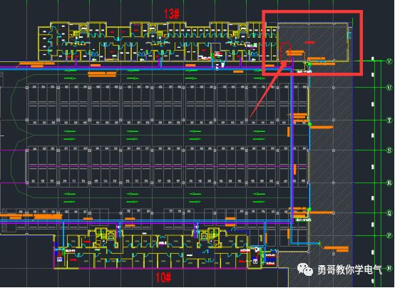 2、配电间的进线位置一定要与车库结合,比如本项目的10#楼,配电间位置选择到了南侧,单体设计人员没看车库图,直接从南侧桥架进线。