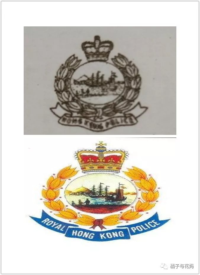 港英时期警徽的改变:上图为未授予皇家称号前,下图为授予皇家称号后第二套:60年代至80年代末期