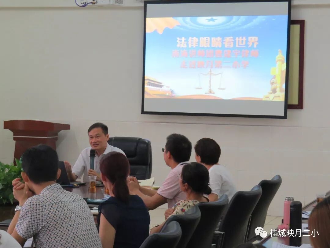 为加强教师法制意识,有效预防涉校违法事件的发生,10月14日下午,我校邀请了佛山市律师协会副会长、广东省律师协会理事、佛山市总商会法律顾问团副团长 、广东盈宇律师事务所主任、党支部书记曹建宇律师来校指导,给全校教师进行了一次题为《法律眼睛看南海》的普法讲座。