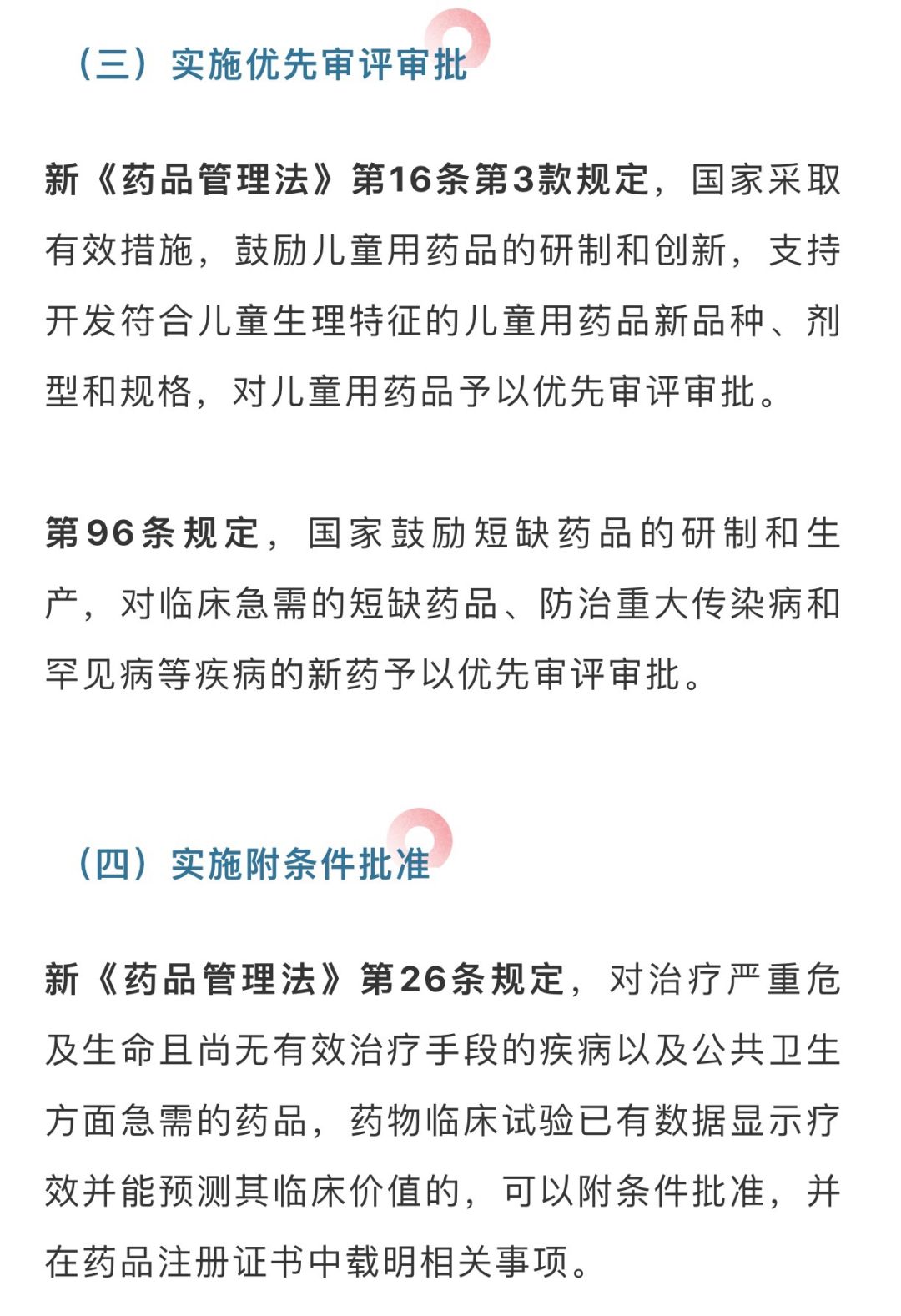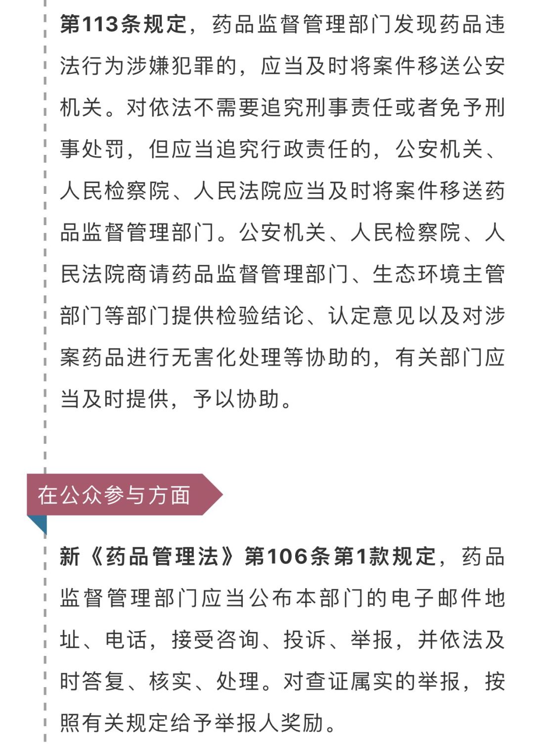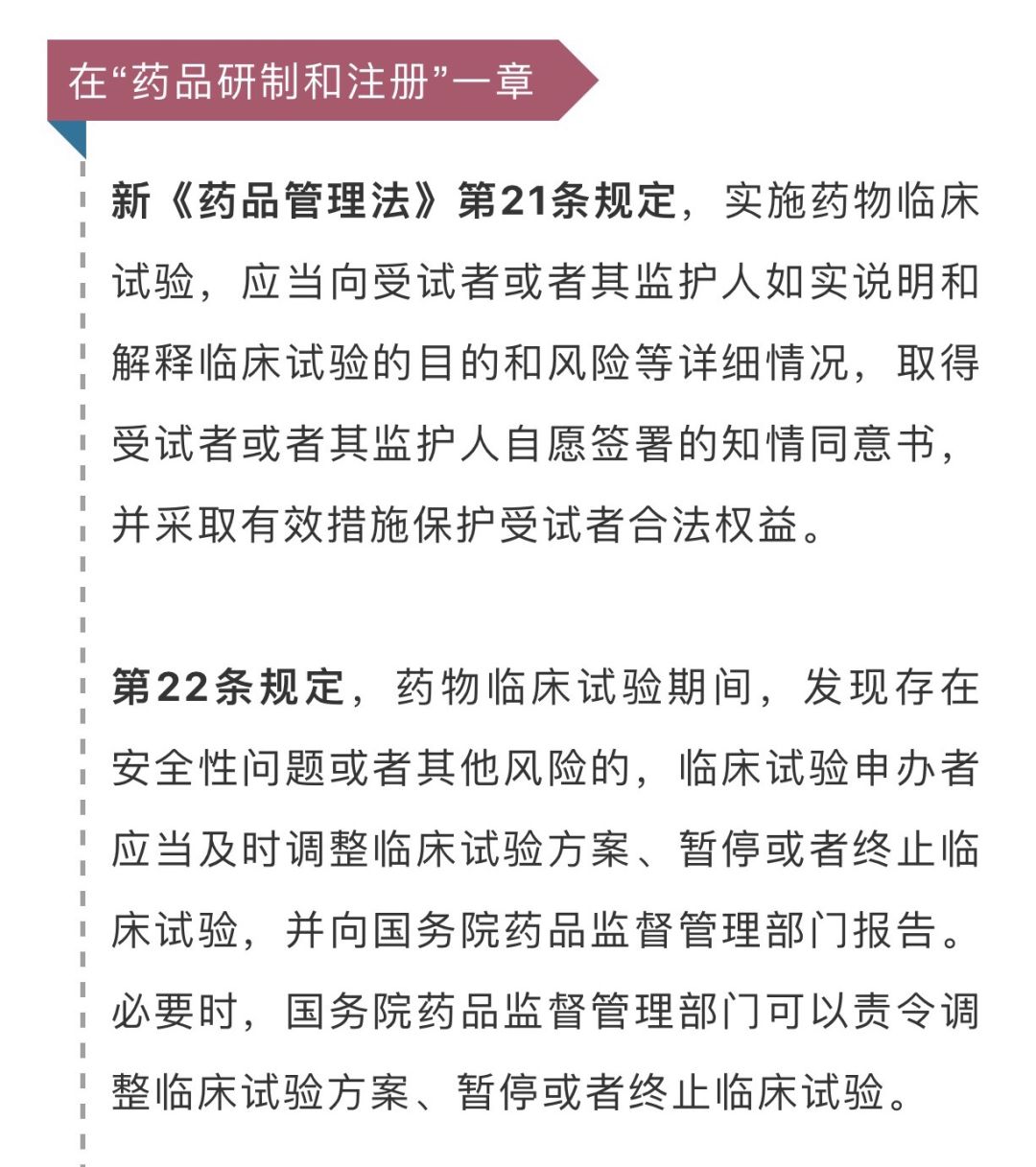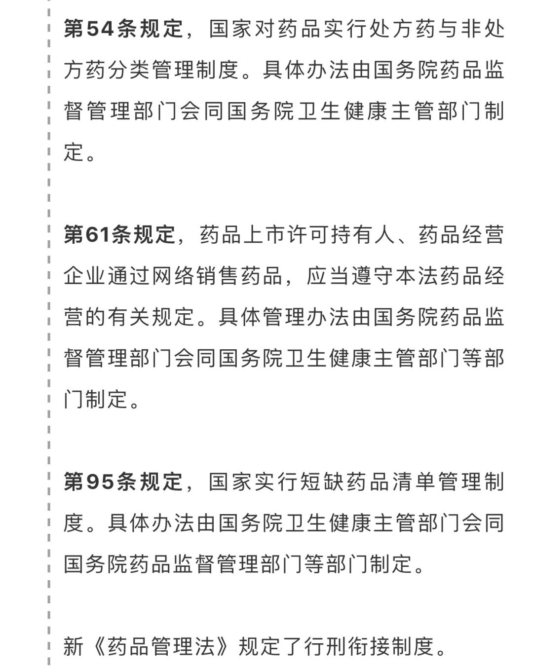 新《药品管理法》的篇章结构设计体现了新时代药品监管工作规律,有利于鼓励药物研制创新,有利于强化各方主体责任,有利于全生命周期监管,有利于落实药品供应保障,有利于保障公众用药安全、有效和可及。
