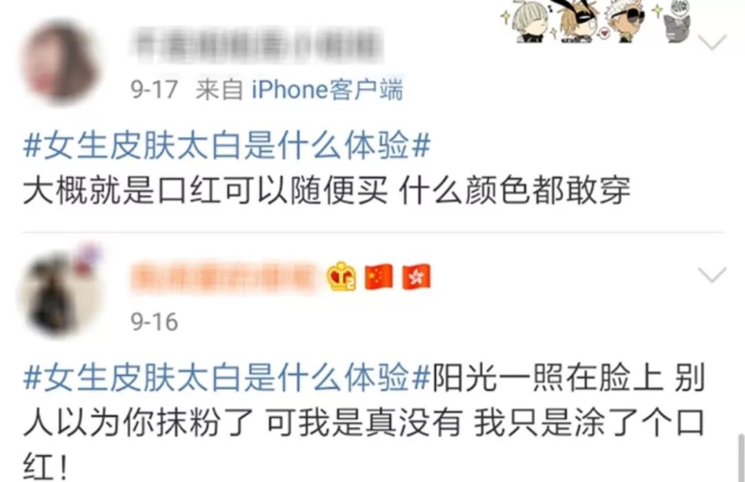 话说,现在的网友对咱们这些黄皮星人也太不友好了吧?竟然在微博扛大旗问:#女生太白是什么体验?#