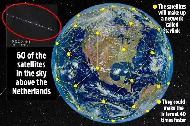 今年5月23日,SpaceX通过猎鹰9号火箭,将首批一共60颗小卫星送上高度约550公里的预定轨道。