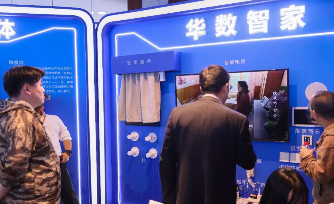 ICTC现场还设有由华数智能机顶盒为“智慧枢纽”的未来客厅:用户通过智能语音遥控器,不仅观影、游戏、教育、查询、政务办理等可一步到位,同时,家里的各类电器、门窗、灯光也可以通过语音遥控。
