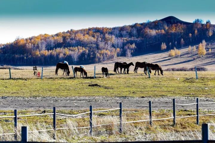 金色的草原,大片的白桦林,五彩的林场。