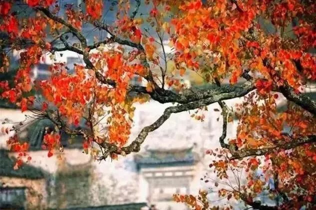 每到秋天,塔川乌桕树经过霜降,由绿变黄,由黄变红,中间呈七彩颜色。村落田野中错落有致的乌桕树叶子红了,形成一幅迷人的田园风光画卷~