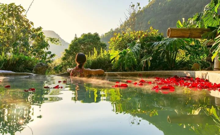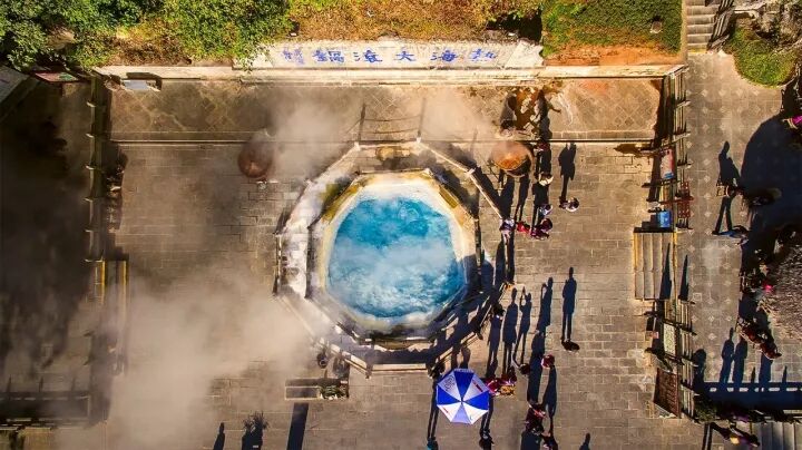 作为温泉之乡,深秋来腾冲自然要泡一泡温泉。这里常年笼罩在一旁热腾腾的白雾之中,听得到热泉咕噜咕噜喷涌的声音。