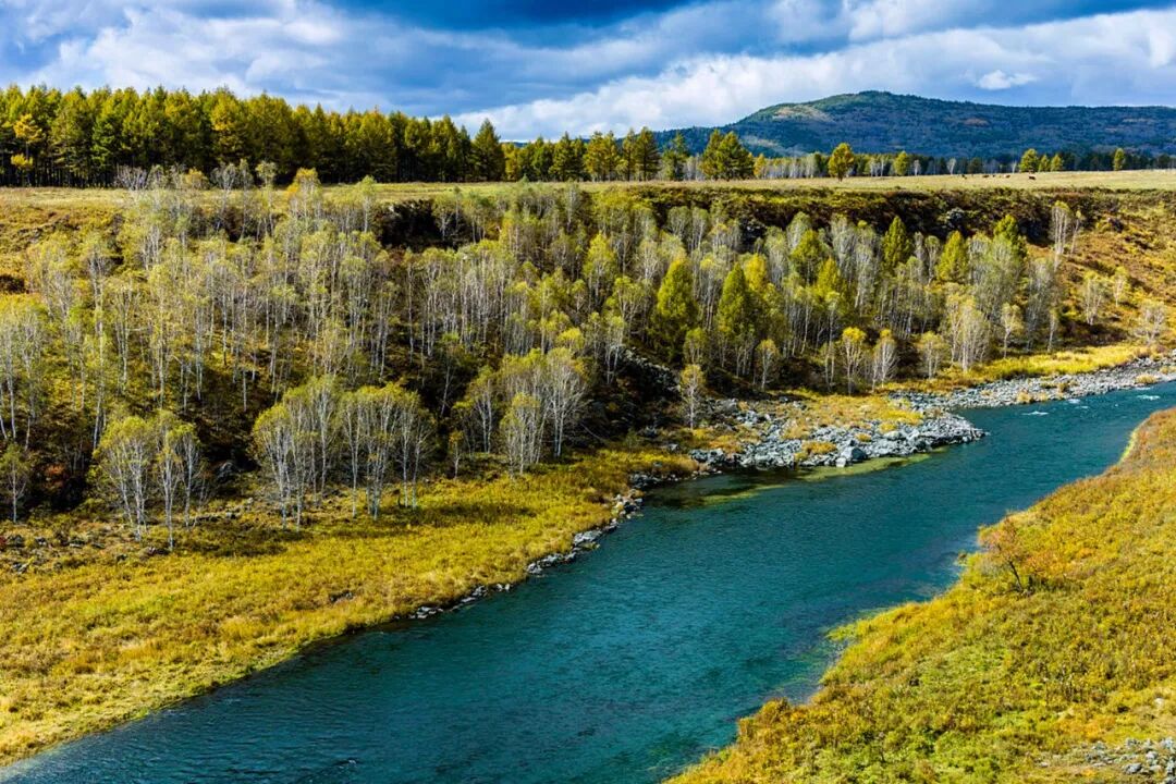 桦树林早早地换上了娇艳迷人的秋装,金色霸占了草原。