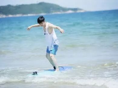 张铭恩身穿白色大背心在海上自在地冲浪,大秀肌肉,真的是荷尔蒙爆棚了!