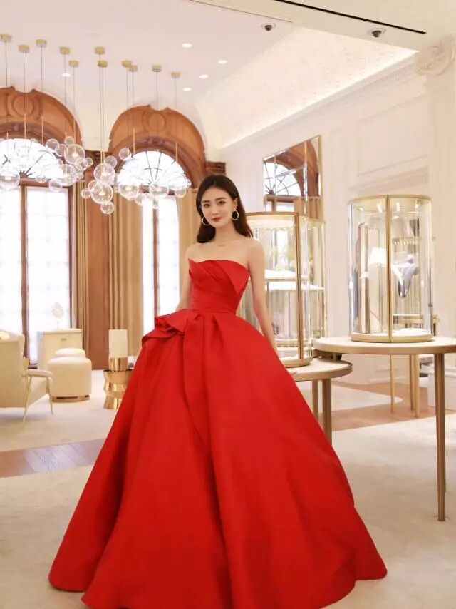 喏,看全身照我们不难发现,徐璐这次选择的可是一款拖地款的长裙,抹胸裙的款式大气又具有女人味,而蓬蓬裙的长裙设计,更是霸气十足,气场全开,即便身高其实也不过165cm,但徐璐这可完全是女王范本人嘛!