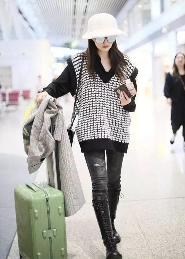 徐璐的私服穿搭那也是开挂了的!毛衣通过几何图案连接黑与白的过渡,不仅提升了整体的时尚度,同时也不会显得简单陈旧,无袖的结构也是十分潮流,内搭黑色打底衣,达到了极具舒服的视觉效果。