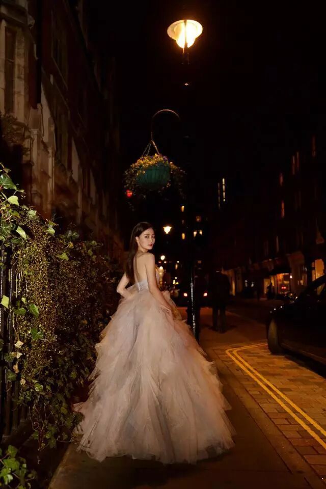 第二身高定礼裙换了风格,是一件仙气十足的公主纱裙和她的气质很搭,款式和大红裙很像,抹胸以及大裙摆,但是颜色和装饰上则是少女十足的感觉。裙子是一个极浅的蓝色接近于白色,给人一种朦胧美。