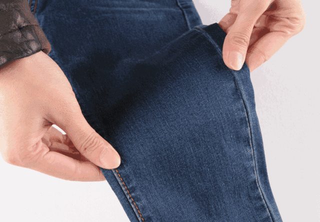 这条牛仔裤在版型设计上根据每个部位不同进行压力设计,腿部显胖的地方弱化,让赘肉自动收紧。