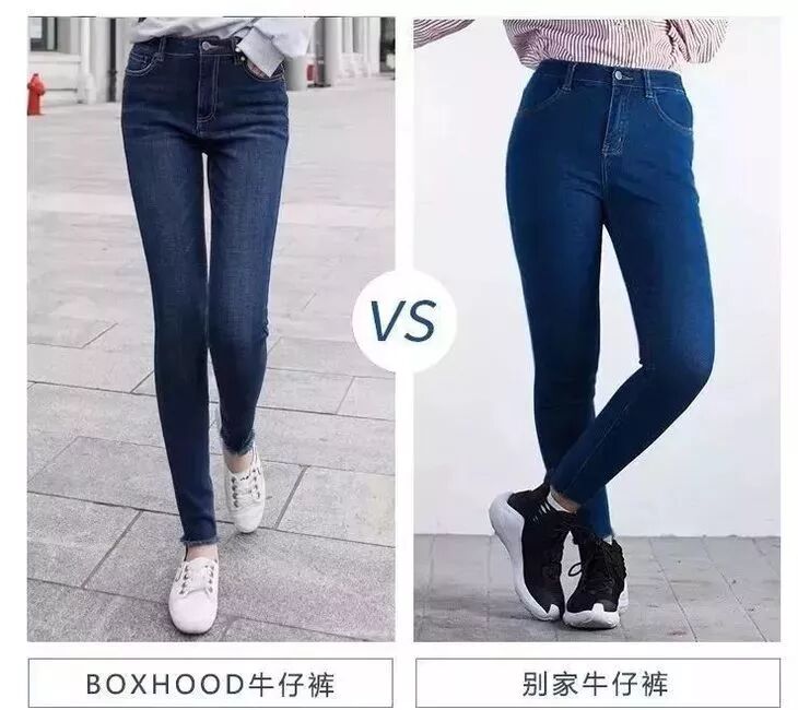(左侧是魔力牛仔裤,右侧是普通牛仔裤)