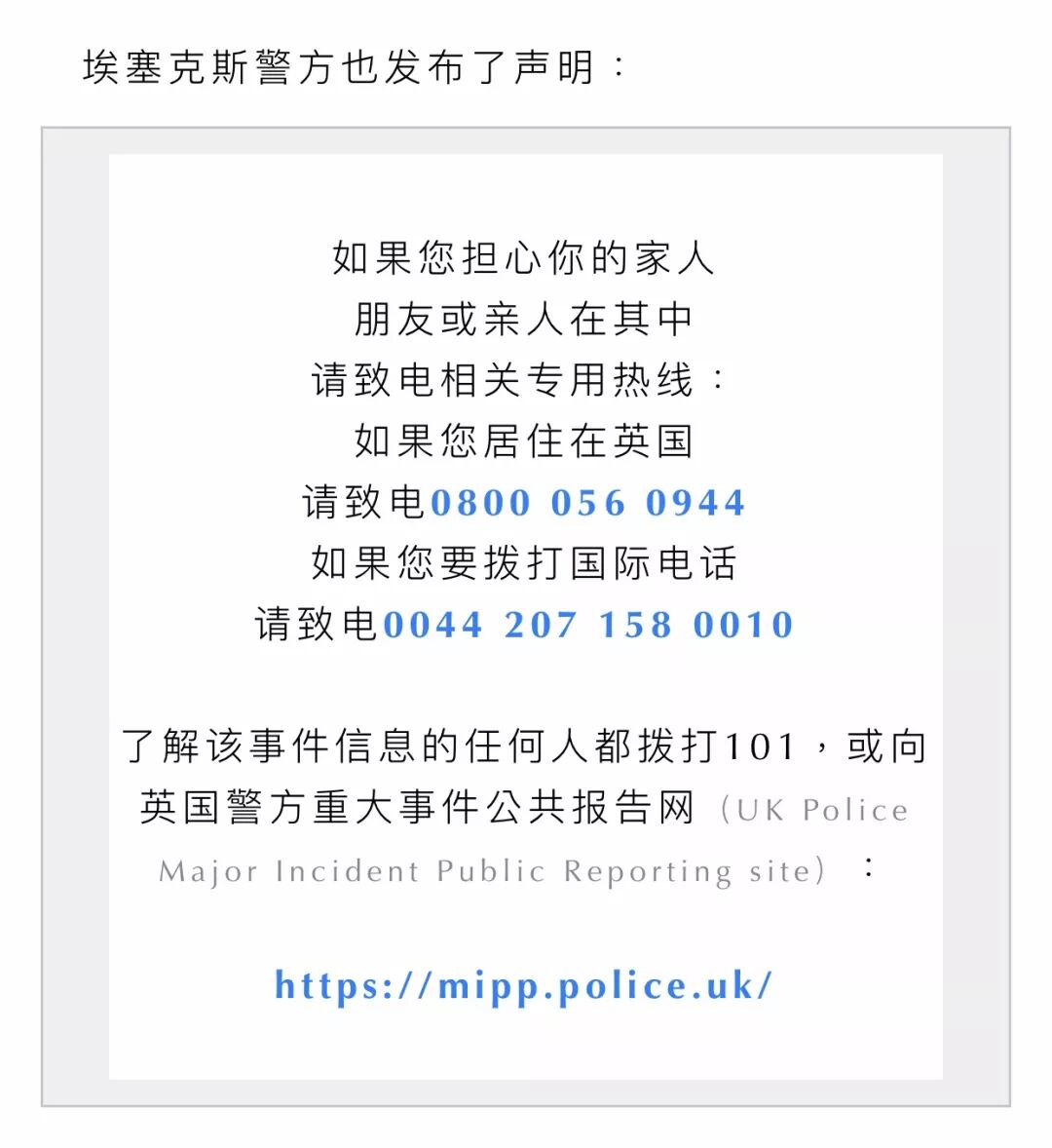 而正忙于脱欧大战的首相鲍里斯也暂时停下了白热化的脱欧争吵,发推文表达了对受害人及其家属的慰问。