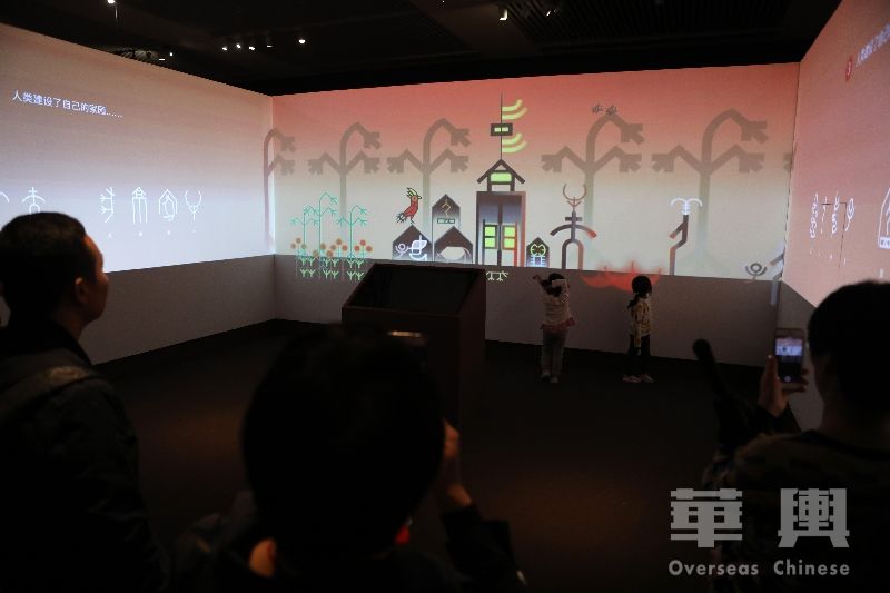 现场的多媒体展示也令人印象深刻,如扫码可获得的甲骨文表情包,十分谐趣地再现了“谢谢”“开心”等甲骨文;甲骨文向简体字转化的过程,多媒体也以图文并茂的形式予以生动说明。