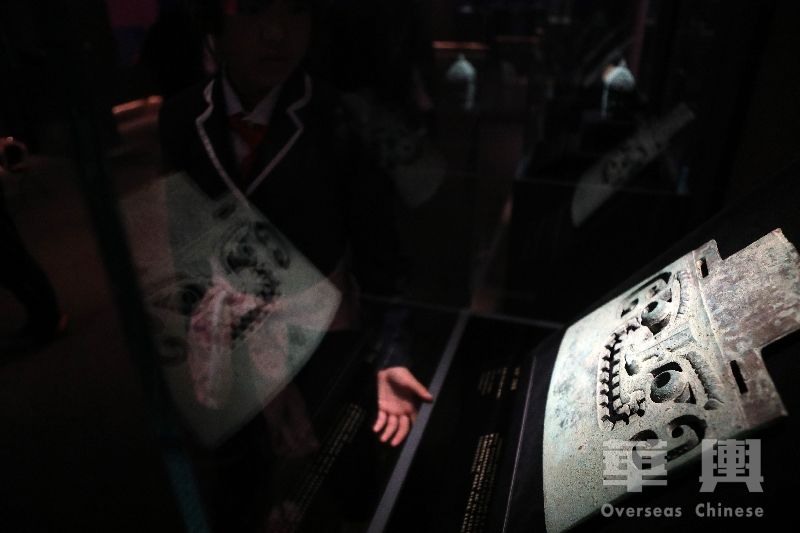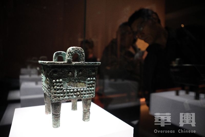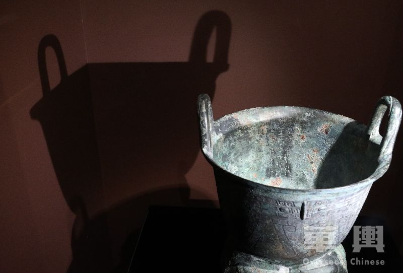 2019年10月24日,现场展出“作册般甗(音同‘演’)”商代后期青铜器内清晰可见3行20字。(图片来自华舆 李国庆摄)