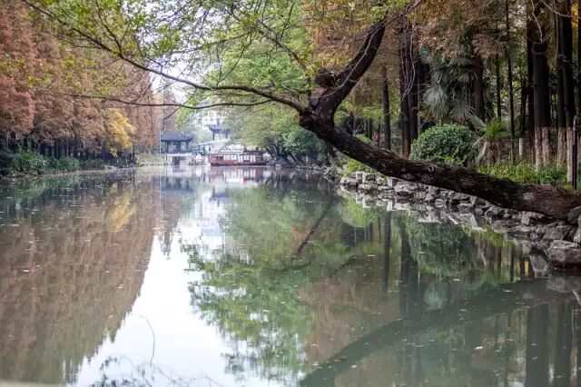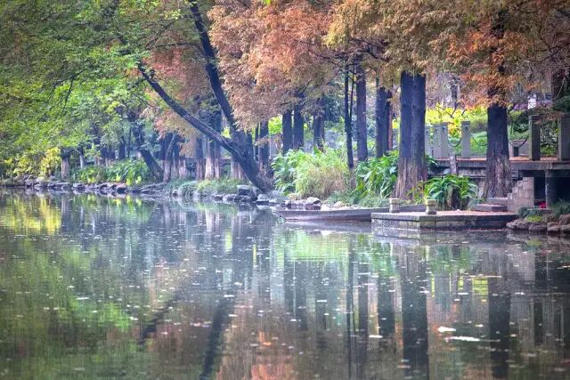 岸边树种丰富,秋天尤其惊艳,水道上船只很少,完全没有“船流如织”的旅游感。