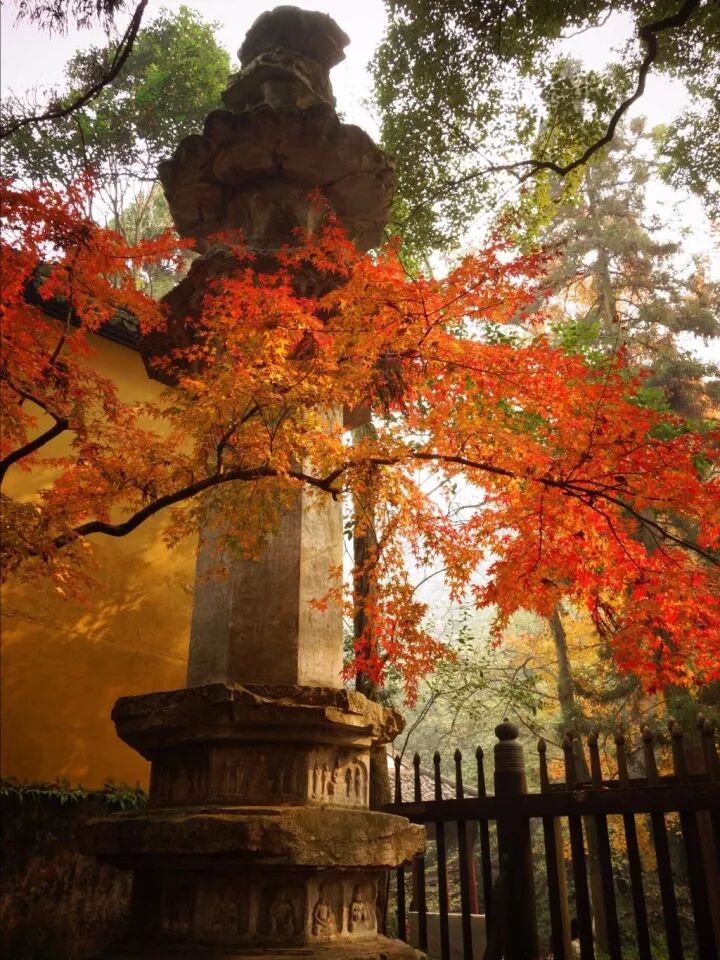 这儿的秋不似北方那般浓烈,趁着寺里的红墙黄壁,却也美到了极致,古典之美淋漓尽致。
