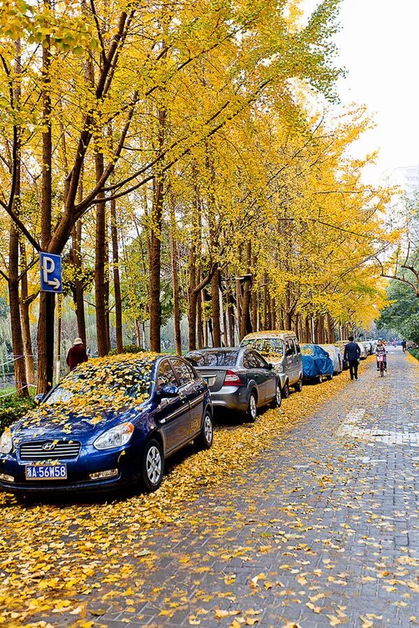 秋天时节,杭州的银杏叶逐渐黄了,杭州最美的一片银杏林位于朝晖公园旁的华园弄。
