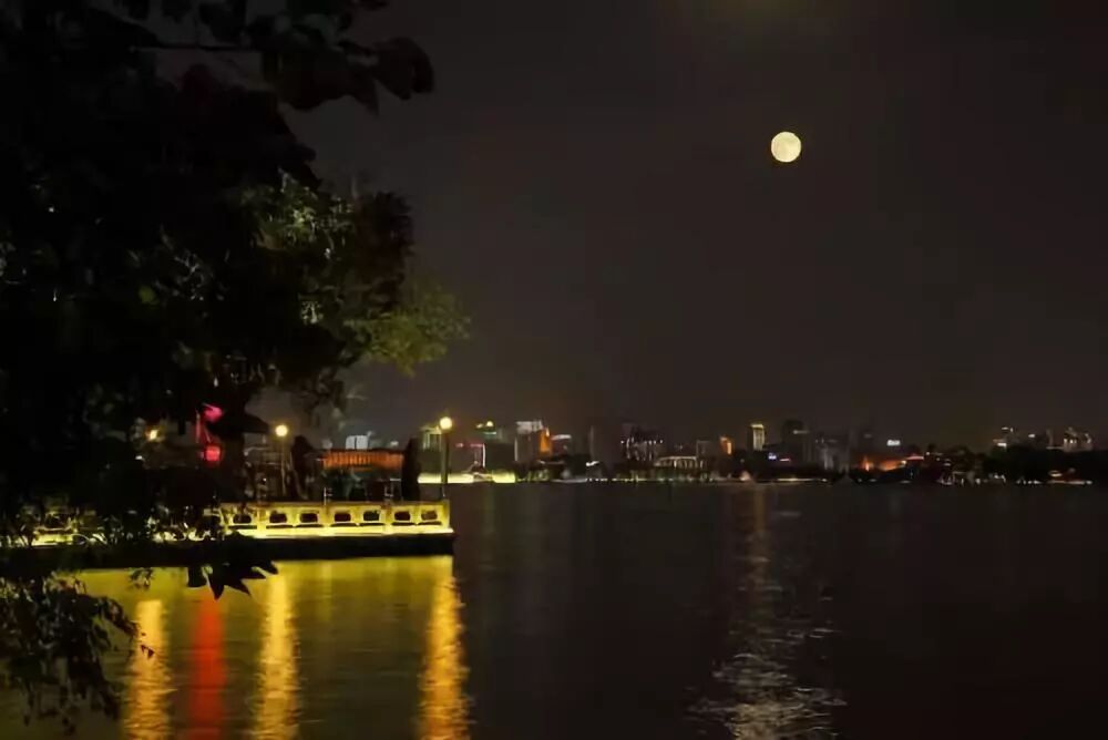 在杭州,中秋赏月莫过于去西湖边走走,白堤上的“平湖秋月”当是最佳位置。