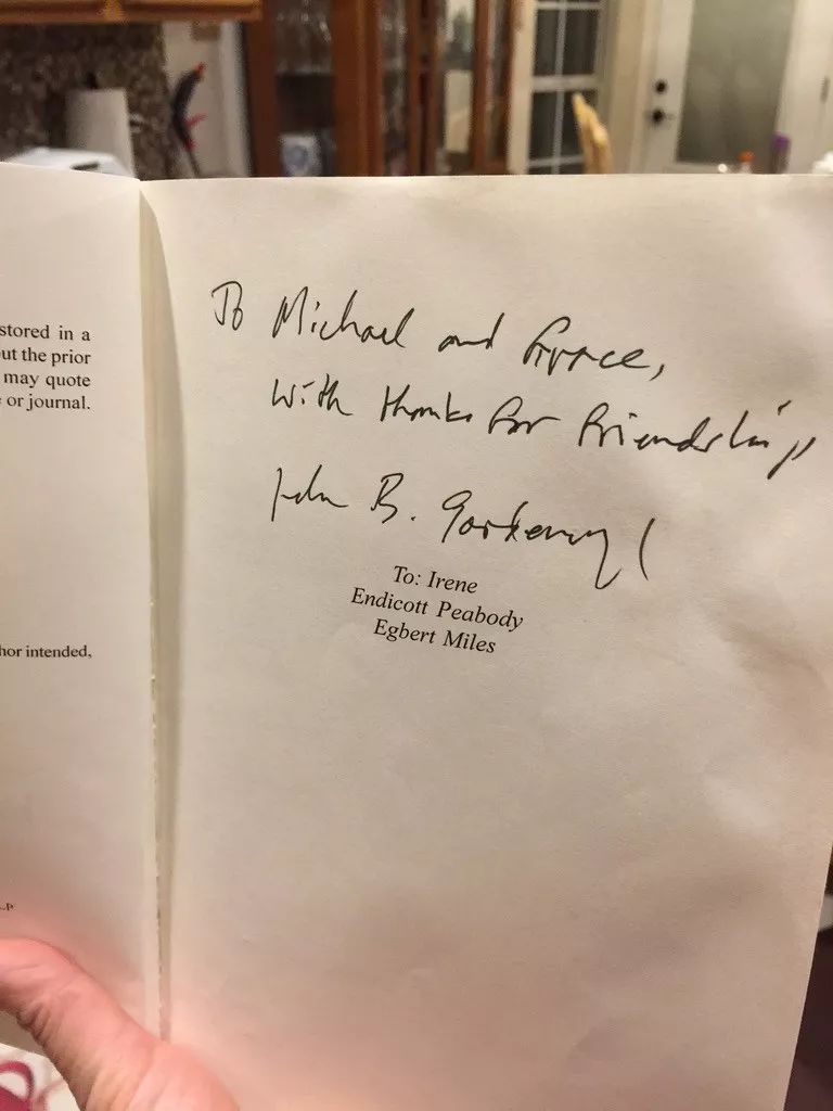 教授的自传《WITNESS TO GRACE》,及教授给作者夫妻的亲笔签名