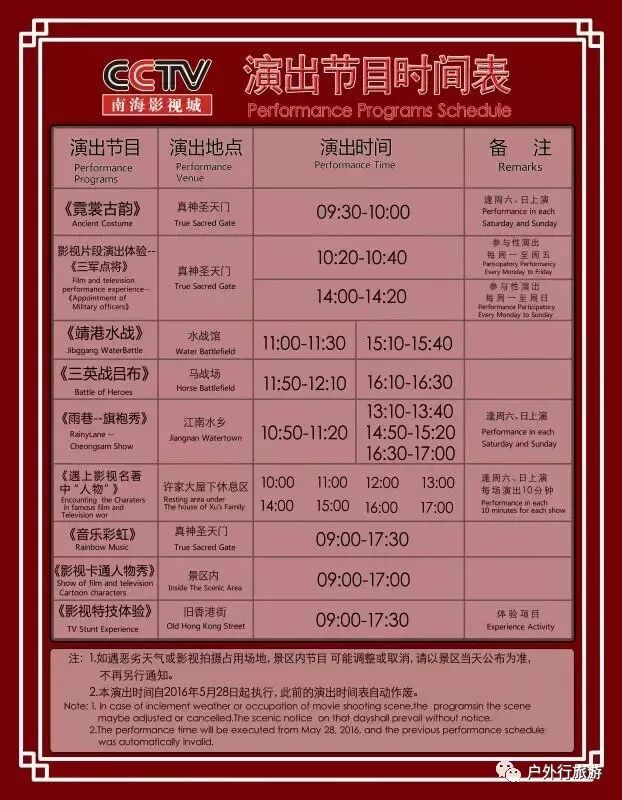 9:30 分左右到达南海影视城,停车场下车后大家入园,开始欣赏皇家园林楼台亭阁的迷人景色,尽情拍美照;在游园的同时别忘了有大型的节目等着你观看。大概时间如下: