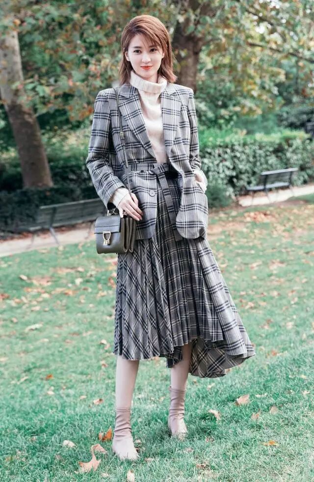 西装是大部分女星都要选择的造型,效果也是各有不同。乔欣的这款格纹西装给人温暖的感觉,搭配高领的毛衣,更显女性温柔气质。同款的百褶裙让乔欣显得知性优雅,加上精致小乔的五官,乔欣像是民国少女一般,复古 而典雅。
