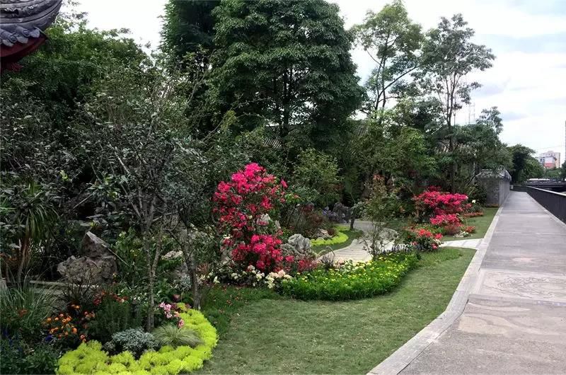 原本是铁栅栏和竹子形成的围栏通过拆围、透绿、补花、增彩等开放式增景提质改造增辟开敞空间将公园临街景观进行了重新设计和打造实现道路绿化与公园绿化的有机结合