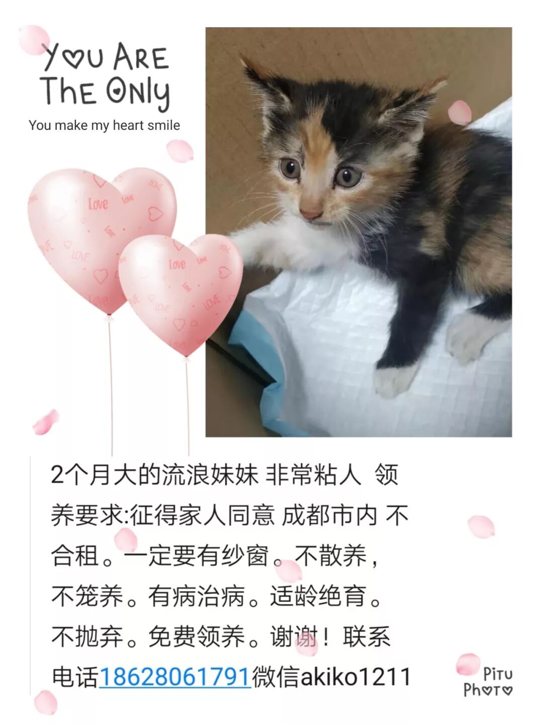 介绍:一岁半的妹妹 因个人原因不能继续养下去 科学喂养 家里有纱窗 不离不弃 前期回访 17761286249 地址:双流区韩国城附近