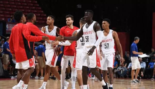 代表火箭队出战的首场夏季联赛,杜瓦尔表现得堪称惊艳,在23分钟的出场时间里,投篮10投7中,异常高效地砍下了20分3篮板2助攻。