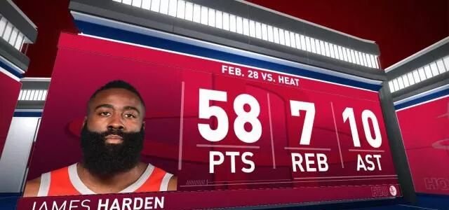 该场比赛里,哈登出手32次,得到58分7个篮板10次助攻,成为了火箭队逆转战胜热火队的功臣。哈登在前两场的比赛状态并不好,特别是三分球非常低迷。但是在今天哈登三分球18投8中,命中率高达44%。当火箭队能够在三分线外建功之时,他们就能够在进攻端打出自己的体系。