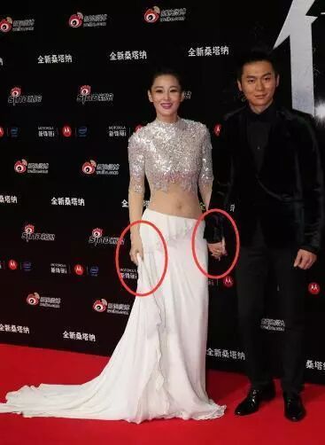 张馨予和李晨同台,看起来她是那么的开心,不过你这手一直拉着裙子是什么意思?