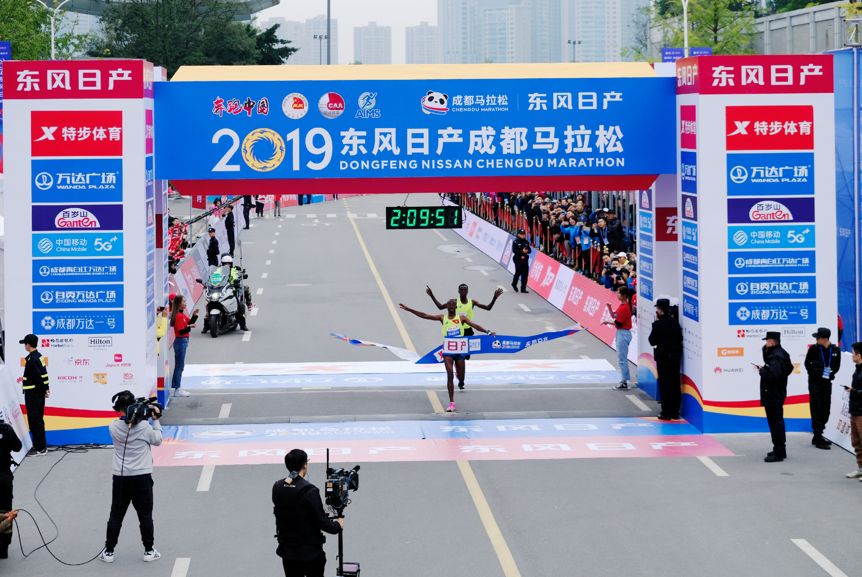 2019东风日产成都马拉松由中国田径协会和成都市人民政府共同主办,比赛分为马拉松、半程马拉松、欢乐跑和竞速轮椅四个项目,参赛选手从金沙遗址博物馆出发,经天府广场、杜甫草堂等成都历史文化景点,马拉松项目和竞速轮椅项目的选手到达世纪城新国际会展中心,半程马拉松项目选手到达天府国际金融中心,欢乐跑项目选手到达文化公园。最终,来自埃塞俄比亚的选手包揽了男子前三,万德森·费莱克·齐格耶以2小时09分52秒获得了此次成都马拉松男子组的冠军,女子组冠军由来自来自埃塞俄比亚的耶内奈什·提拉胡恩·丁克萨以2小时29分05秒获得,第二名和第三名由来自埃塞俄比亚和肯尼亚的选手获得。