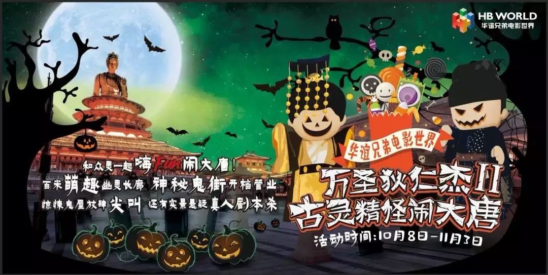 谁说只有大人才能参加万圣节party?华谊兄弟电影世界“万圣狄仁杰II”魔幻归来让熊孩子和大朋友都成为主角!喜欢大唐文化和侦探故事的你一定要来哦