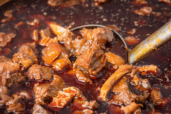 “筋头巴脑”名字听起来呆萌,实际是由牛肉、牛筋、牛肚、牛排和30+上等中草药精心烹制而成的“牛菜”,炖制足足4个半小时才出锅。