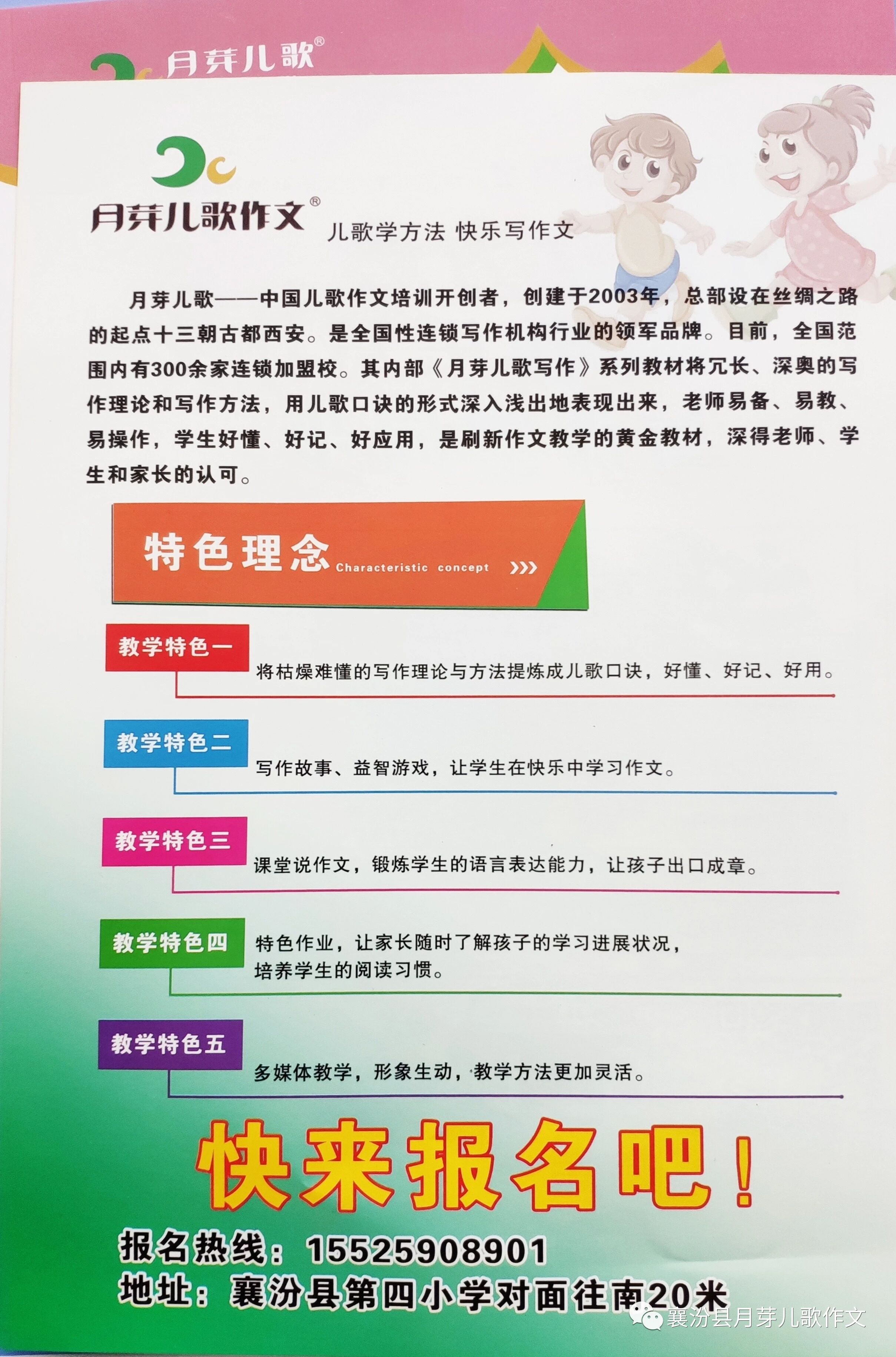 if (!window.__second_open__) { document.getElementById('js_image_desc').innerHTML = "月芽儿歌——中国儿歌作文培训开创者,创建于2003年,总部设在丝绸之路的起点十三朝古都西安。是全国性连锁写作机构行业的领军品牌。目前围内有300余家连锁加盟校。\x0a 襄汾县月芽儿歌作文,经历了我们老师一年多的努力于学习,终于在2019年10月1日签订了加盟合同。".replace(/\r/g,"").replace(/\n/g,"