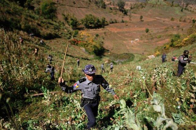 2017年12月6日,联合国毒品和犯罪问题办公室发布消息称,2015至2017年间,缅甸罂粟种植量下降了25%。2015年时,掸邦和克钦邦的罂粟种植面积为54500公顷,政府销毁了13450公顷;2017年的种植面积为41000公顷,政府销毁了3633公顷。
