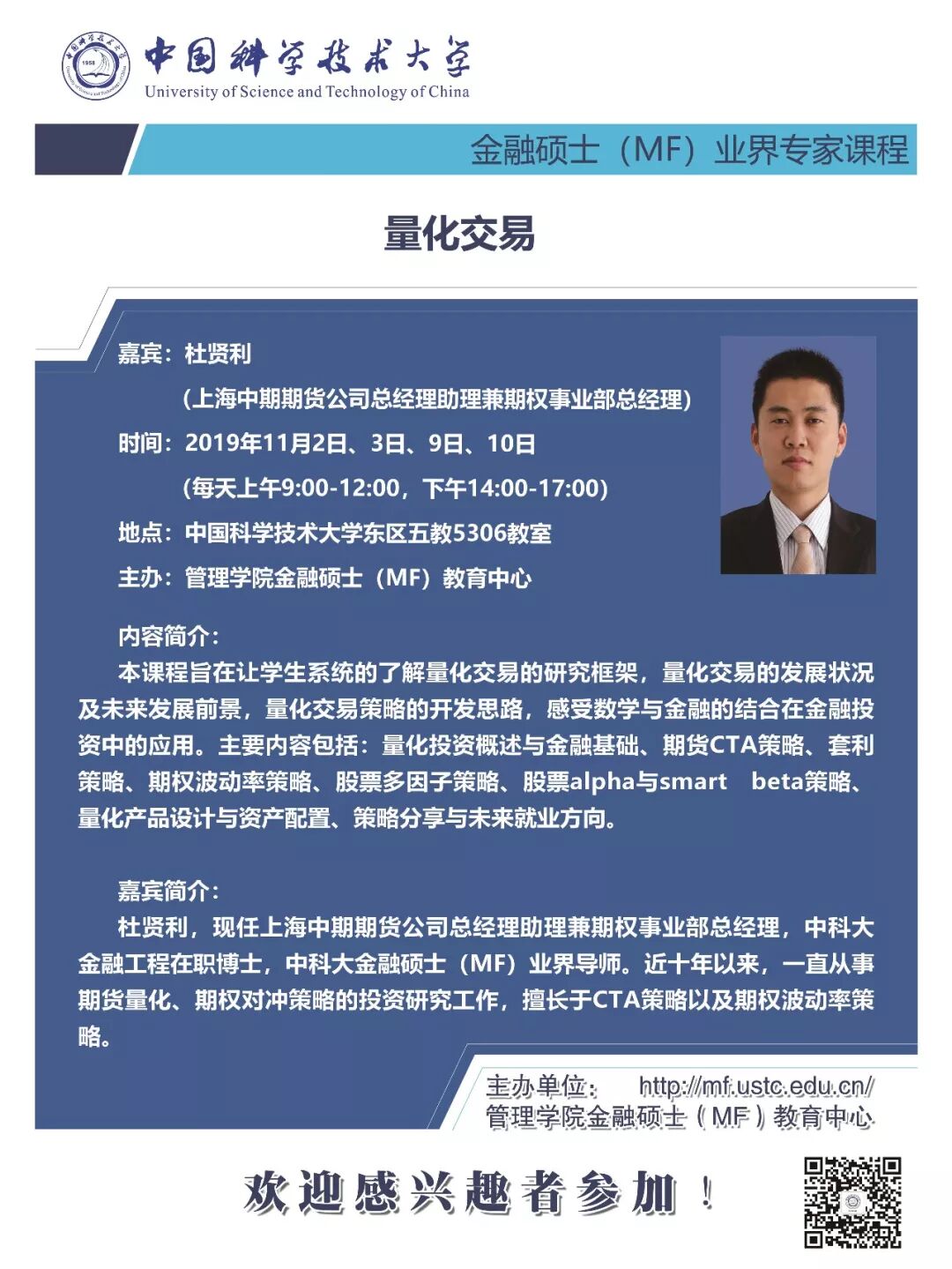 中科大金融硕士(MF)业界专家课程之 量化交易