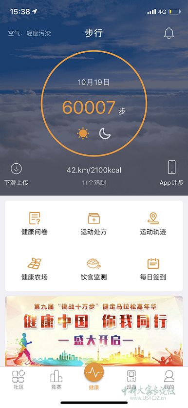 10月19号,万步网举办的一年一度的挑战10万步活动开始,我参加了奥森的活动,与几位科大家长见了面,碰到了几位老同事,边走边聊,还能欣赏北京秋季的美景,对我们这些空巢家长来说,是一项很好的活动,大家都来参与吧!