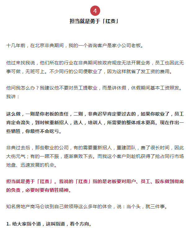 特别是作为承上启下的中层管理干部,这个位置不容易做。你要想让上上下下大多数人满意,得到上上下下的支持,你就得有「扛雷」精神。