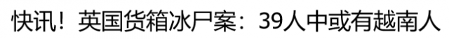 据BBC最新报道,货柜车中发现的39名遇难者中,可能至少有6人来自越南,包括一名26岁越南女子Pham Thi Tra My和一名20岁越南男子Nguyen Dinh Luong。